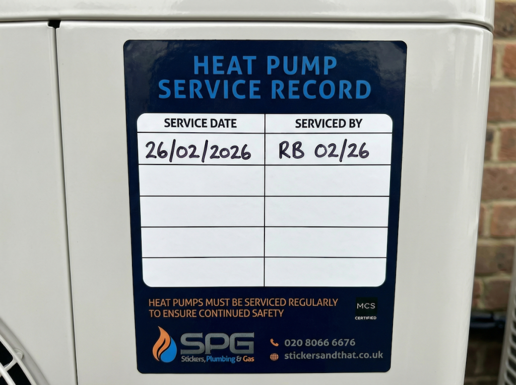 Keep heat pump servicing clear, compliant, and professional with our Heat Pump Service Record Stickers. Designed for engineers and installers, these high-tack vinyl stickers adhere securely to heat pump casings and won’t peel over time. Each sticker provides a clear, easy-to-write service log so service dates and engineer details are always visible at a glance.