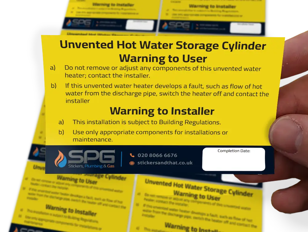 b) If this unvented water heater develops a fault, such as flow of hot water from the discharge pipe, switch the heater off and contact the installer